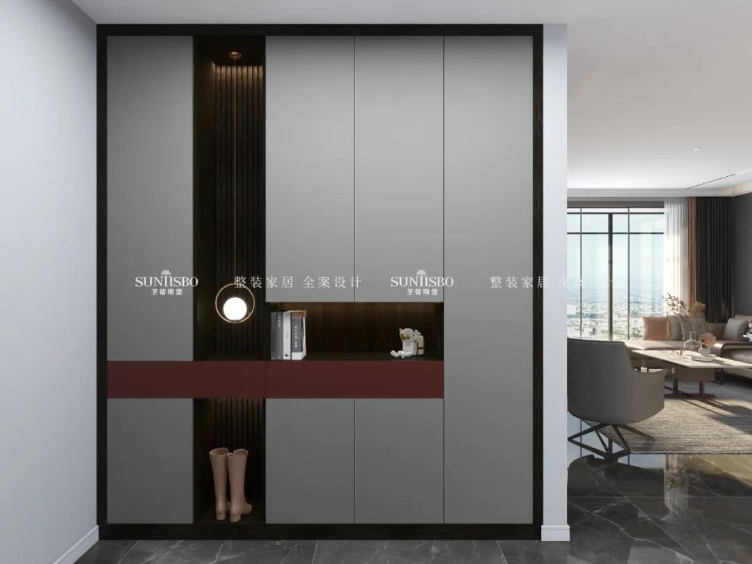 整体配色简约时尚,花色可选性多;材质上采用新型高级材料——欧松板,通过UV漆工艺表面形成超级肤感膜,使接触面舒适细腻。同时使用线条感简洁利落的拉手作为设计元素,子母拉手的设计别具一格,体现了设计师的用心;搭配灯光和功能件,使产品极具展示效果与功能性。